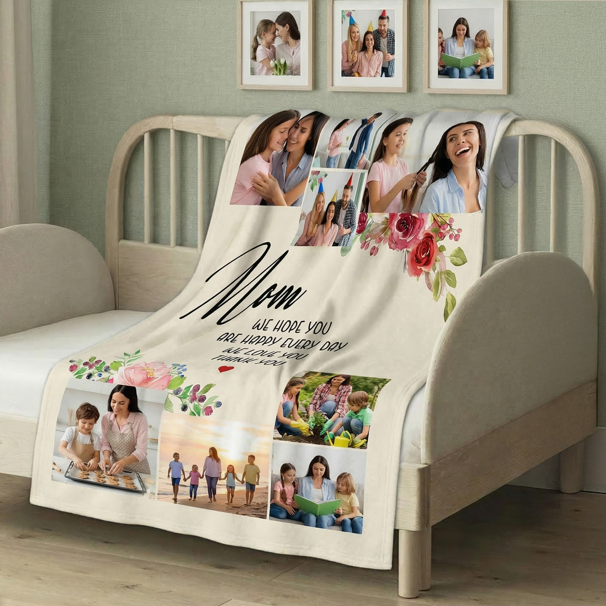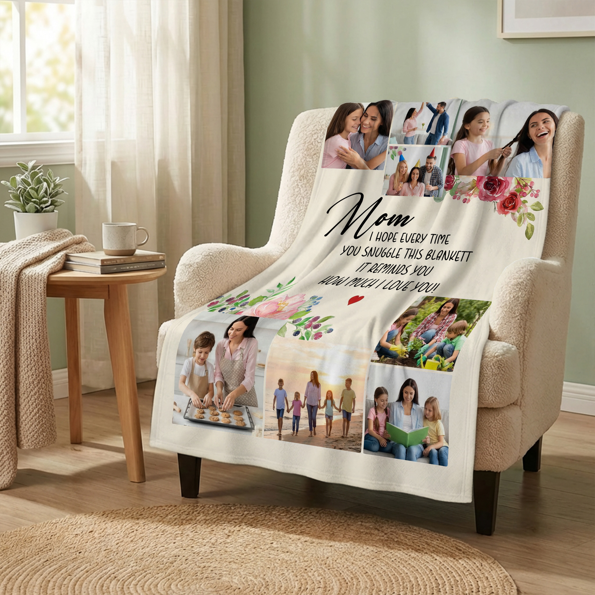 Style Personalized Name & 8 Photos Floral Mom’s Blanket
