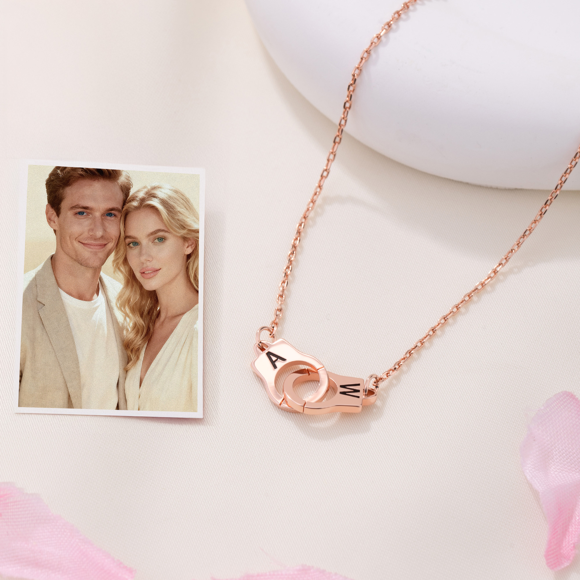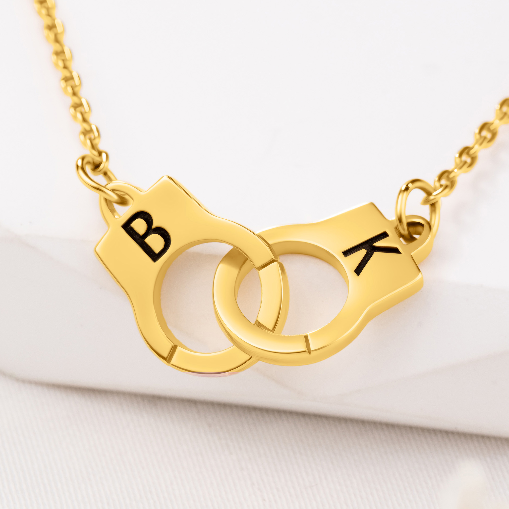 Custom Double Initials - Customize the necklace with two engraved initials on the handcuff charms to create a meaningful keepsake. The personalized detail adds sentimental value, making it a treasured piece that tells a unique story.